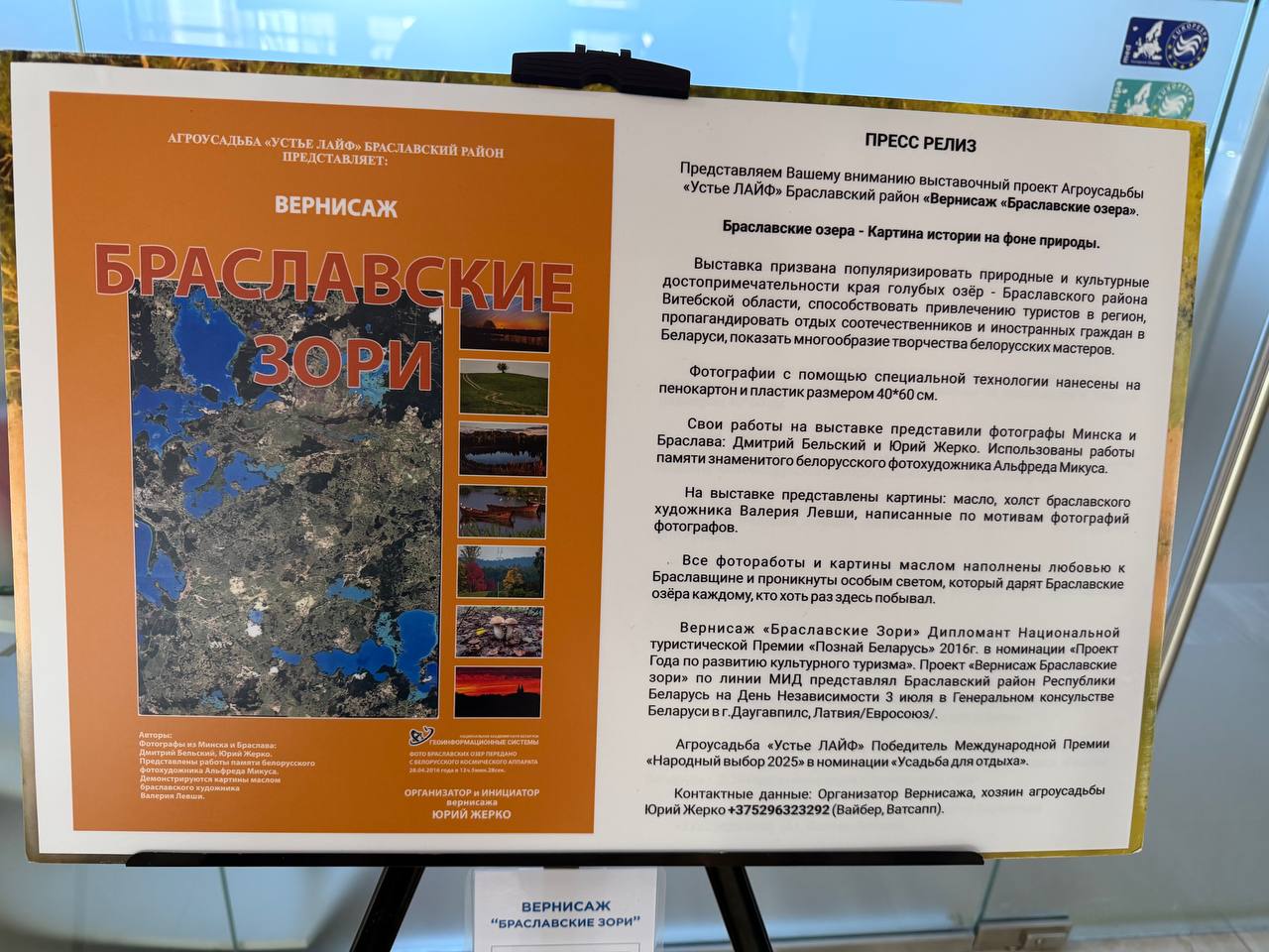 Этот выставочный проект, «Вернисаж Браславские Зори», посвящён красотам Браславских озёр – уникального региона Витебского Поозерья. В экспозиции представлены яркие и вдохновляющие работы, созданные в рамках нескольких фотопленеров, проведённых Юрием Жерко и его друзьями, – начиная с 2015 года и по настоящее время.