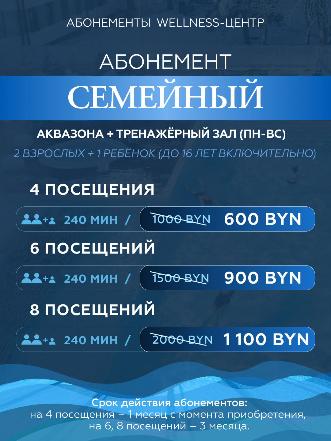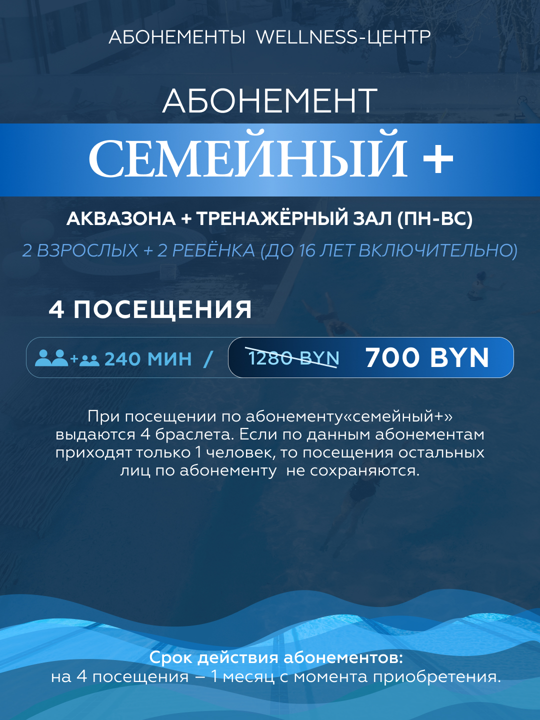Подробности и покупка абонементов у администратора wellness-центра: +375 (17) 503 93 22