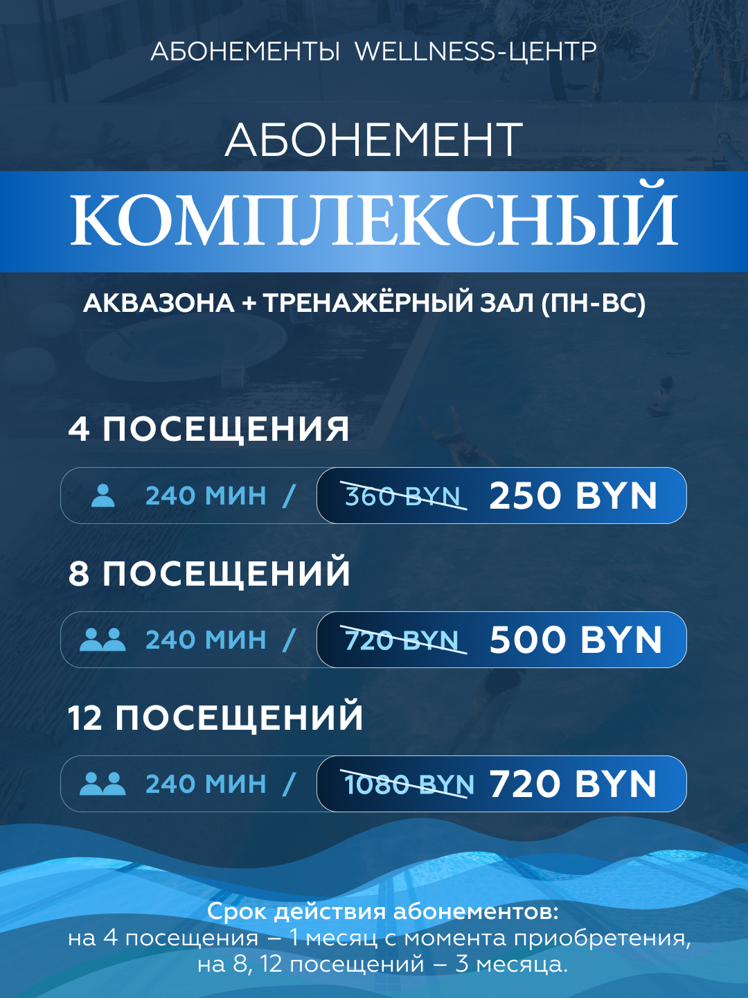 Абонементы на посещение аквазоны и тренажерного зала Wellness-центра
