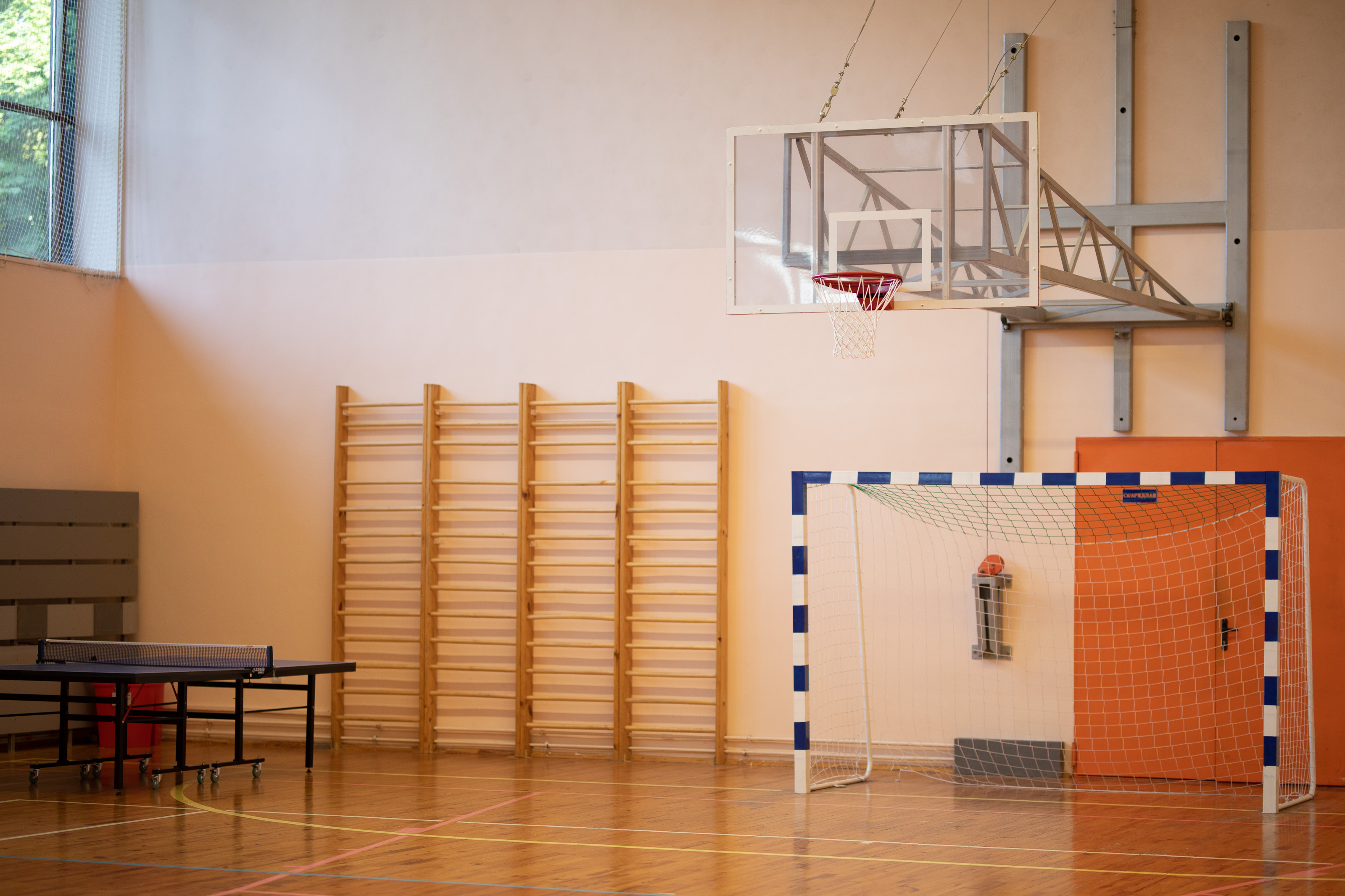 Зал оборудован всем необходимым инвентарём для активных занятий: волейбол, баскетбол, теннис и многое другое.