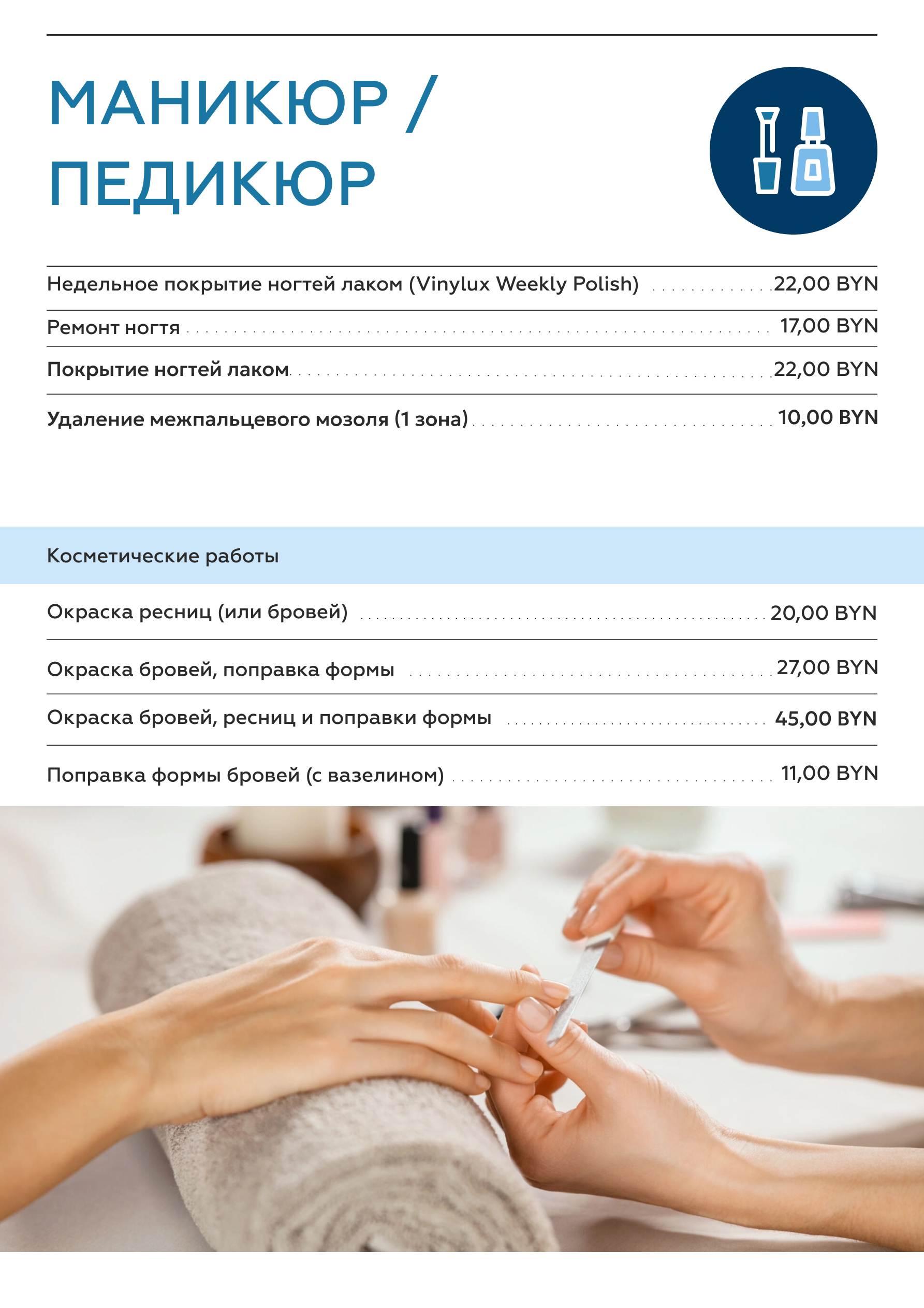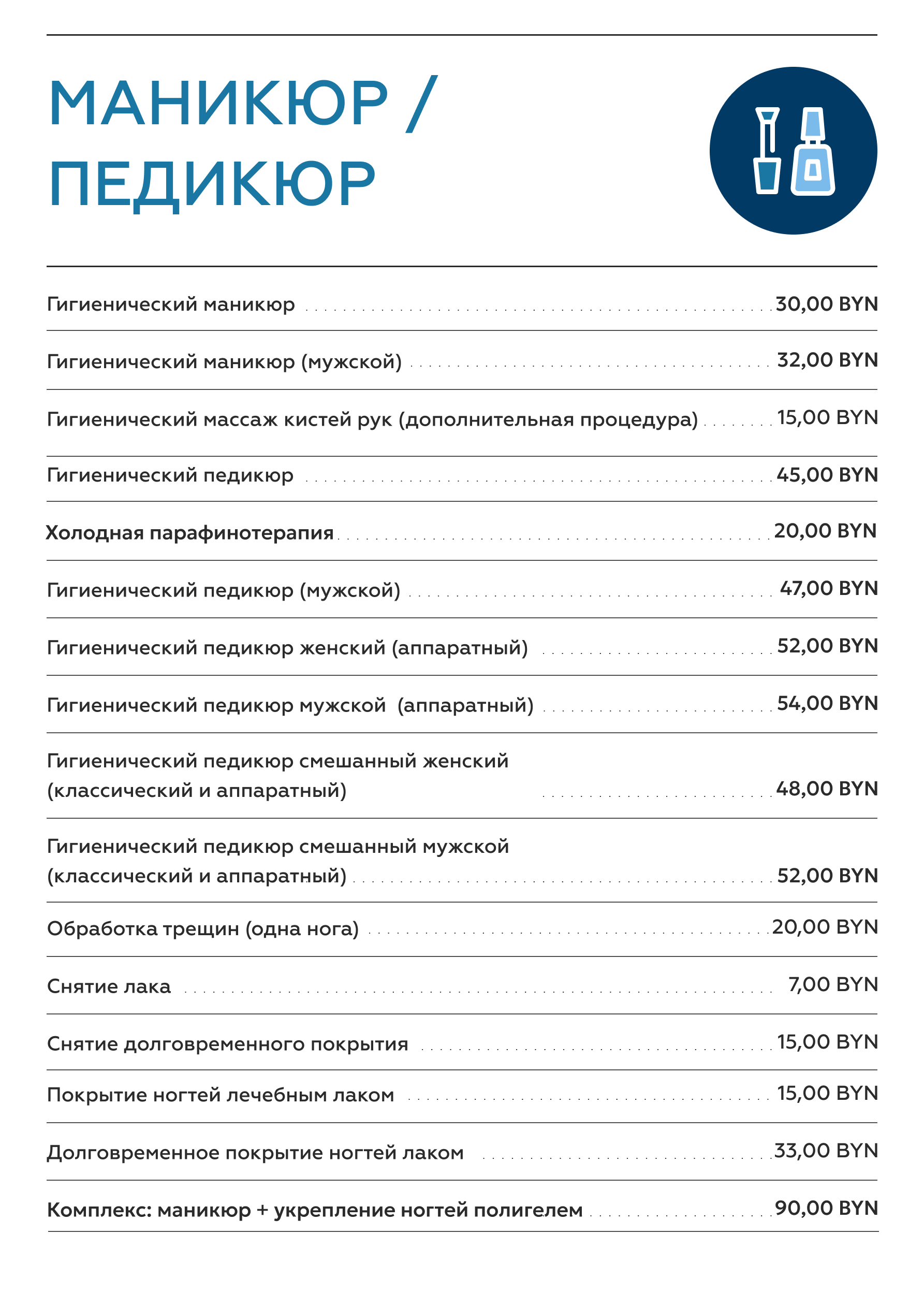 Обновление прайс-листа на услуги маникюра и педикюра