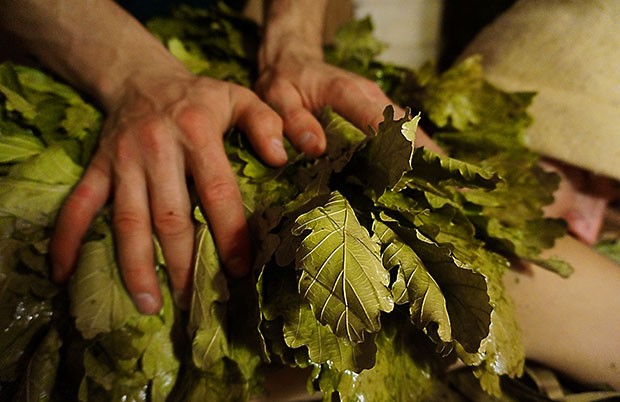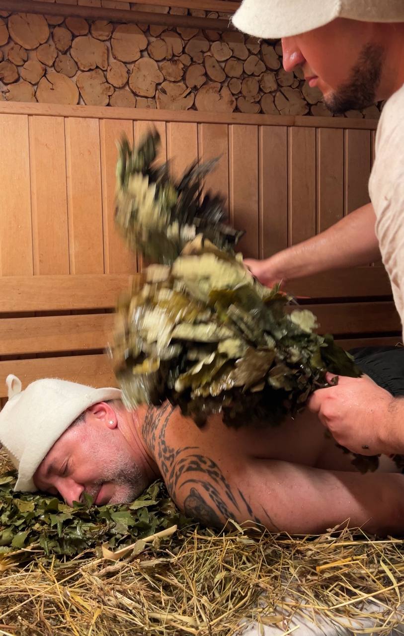 Обучение техникам работы с веником — берёзовым и дубовым.