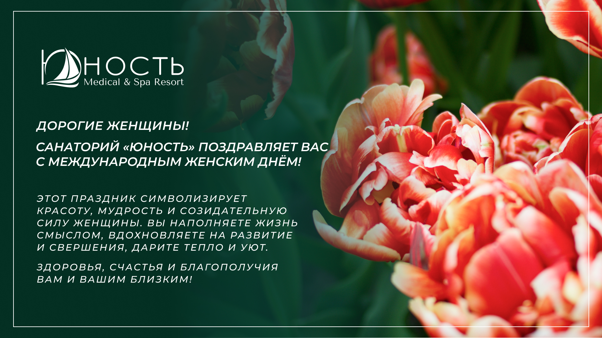 Дорогой коллектив санатория Санаторий «Юность»! Хочу от всего сердца поблагодарить вас за прекрасный отдых и заботу. Уже два года подряд я приезжаю к вам и каждый раз уезжаю с самыми тёплыми впечатлениями и восстановленным здоровьем. Этим летом снова с радостью собираюсь к вам. В вашем санатории чувствуется искреннее внимание к людям — от врачей до обслуживающего персонала. Прекрасная лечебная база, профессионализм специалистов и доброжелательная атмосфера делают пребывание по-настоящему комфортным. Особенно радует чистота, уют в номерах и великолепная, ухоженная территория, где приятно гулять и отдыхать душой. Спасибо вам за тепло, заботу и высокий уровень сервиса. До скорой встречи!